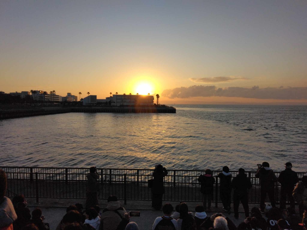 日の出時間は7時過ぎですが、周りが明るくなってくる頃からたくさんの人が集まってきます。